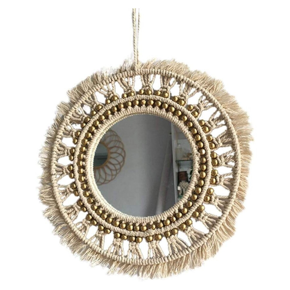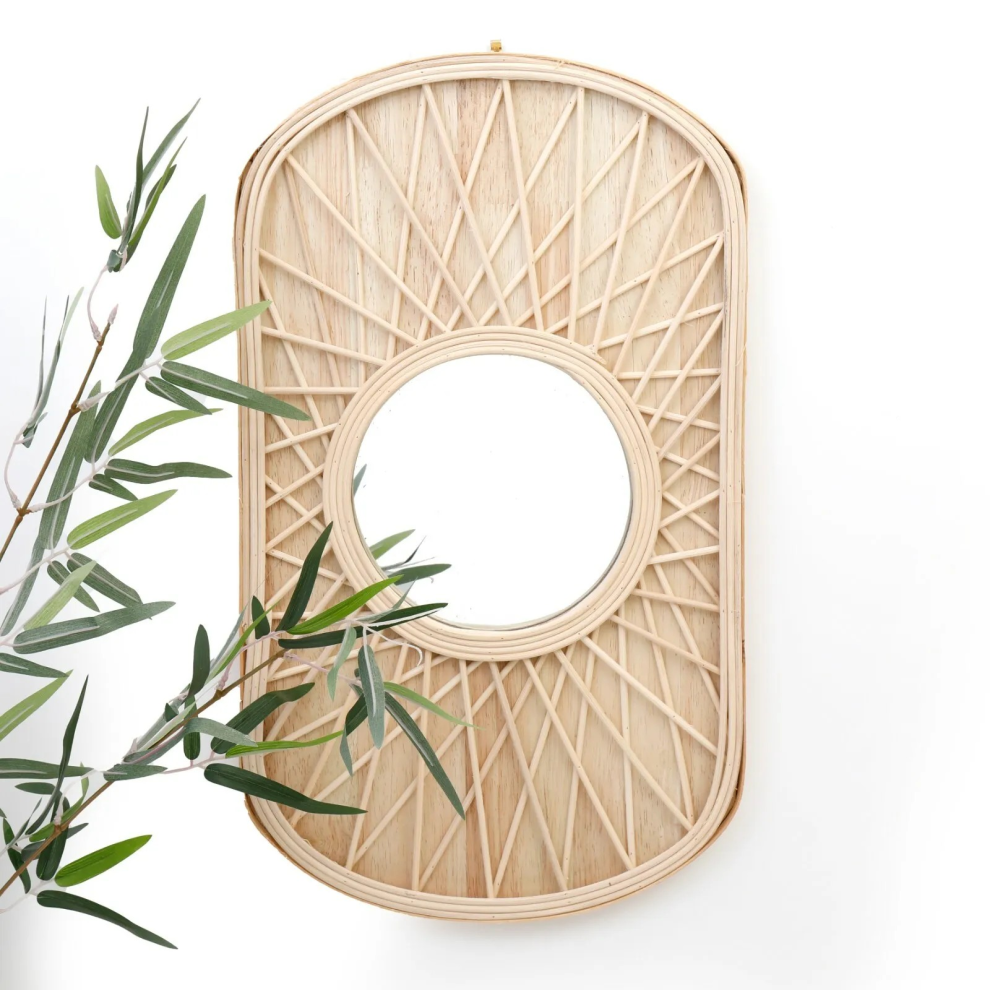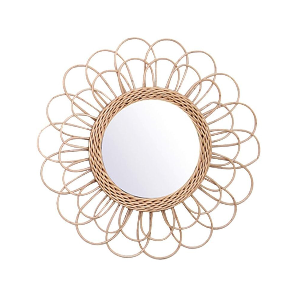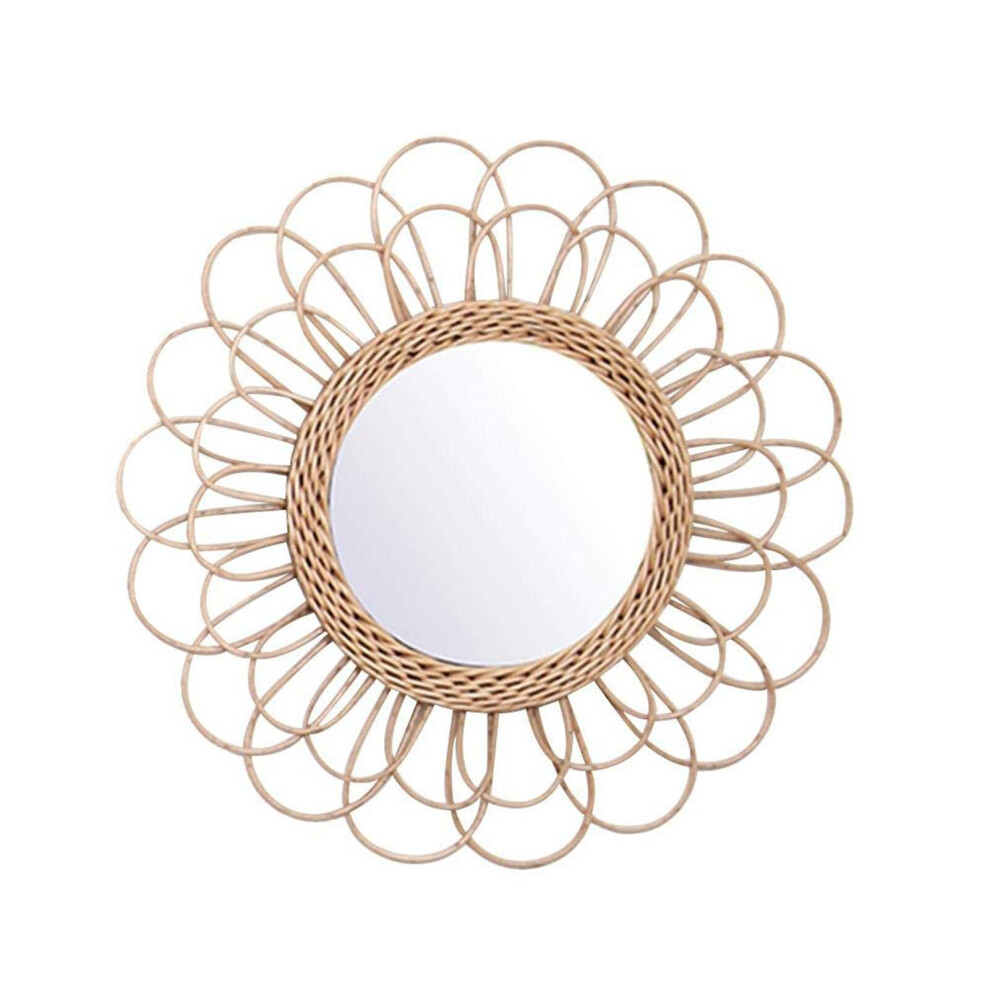 Wicker Mirror Hairdresser Mirror Art Deco Wall Hanging Geometric Boho Mirror Decorative Mirror