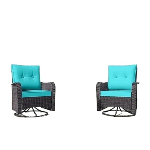 Patio Furniture Set Outdoor Swivel Gliders Rocker, Wicker Patio Set, Rattan Rocking Chair with Tempered Glass(Blue)