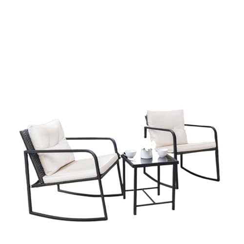 SUNSITT 3 Piece Outdoor Bistro Set, Wicker Patio Rocking Bistro Set w/Weather-Resistant Cushions, Metal Bistro Table & Chairs Set of 2, Woven Rattan Patio Rocking Chairs Set w/Outdoor Coffee Table