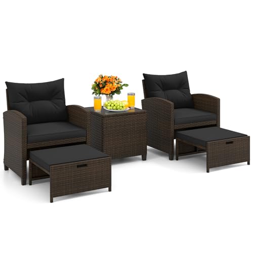 KOTEK 5 Pieces Patio Furniture Set with Ottomans, Wicker Patio Conversation Set with Coffee Table & Cushions, PE Rattan Outdoor Lounge Chairs for Backyard, Porch, Poolside (Mix Brown- Black)