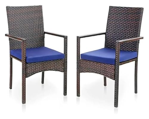 Patio Wicker Chair Set of 2, Outdoor Modern PE Rattan Armchair with Removable Cushions for Deck, Porch(Rattan 2-2pcs)
