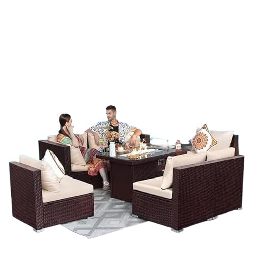 Wicker Patio Furniture Set,with Fire Pit Table 55000 Balcony Lounge,Sectional Large Size Sofa Sets