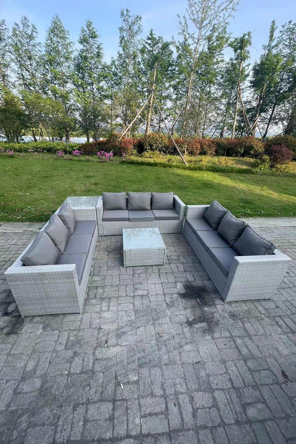 10 Seat Light Grey Lounge Outdoor PE Rattan Garden Furniture Set Wicker Sofa Set Oblong Coffee Table