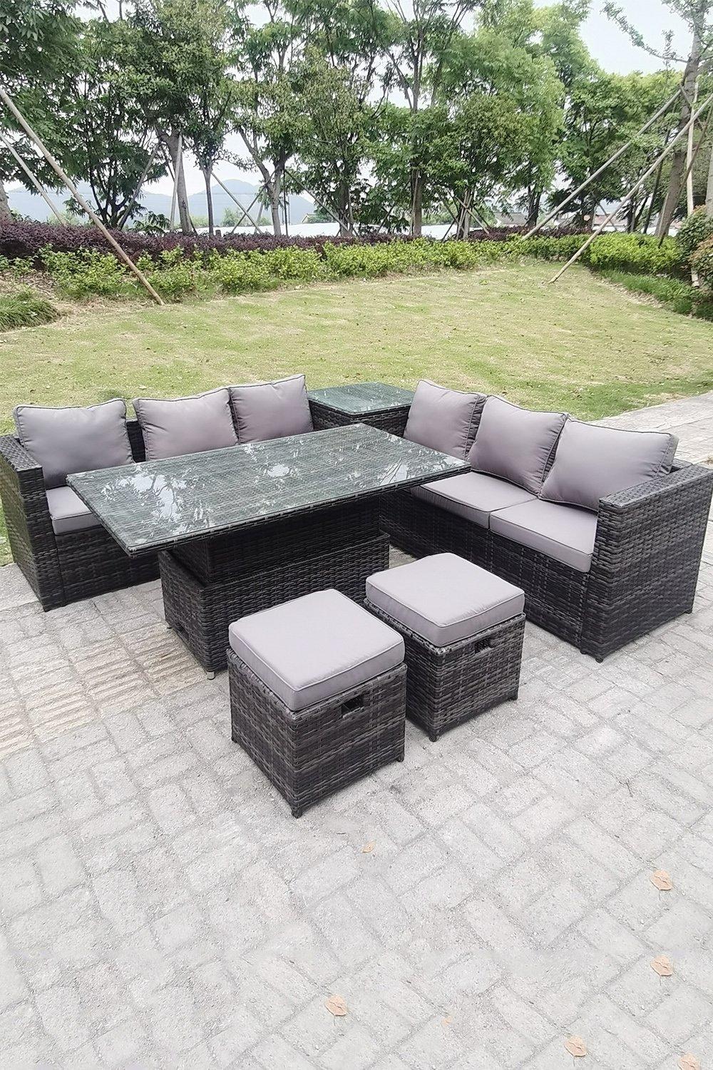 Dark Grey Mixed Wicker Rattan Corner Sofa Garden Furniture Rising Table Sets Footstool