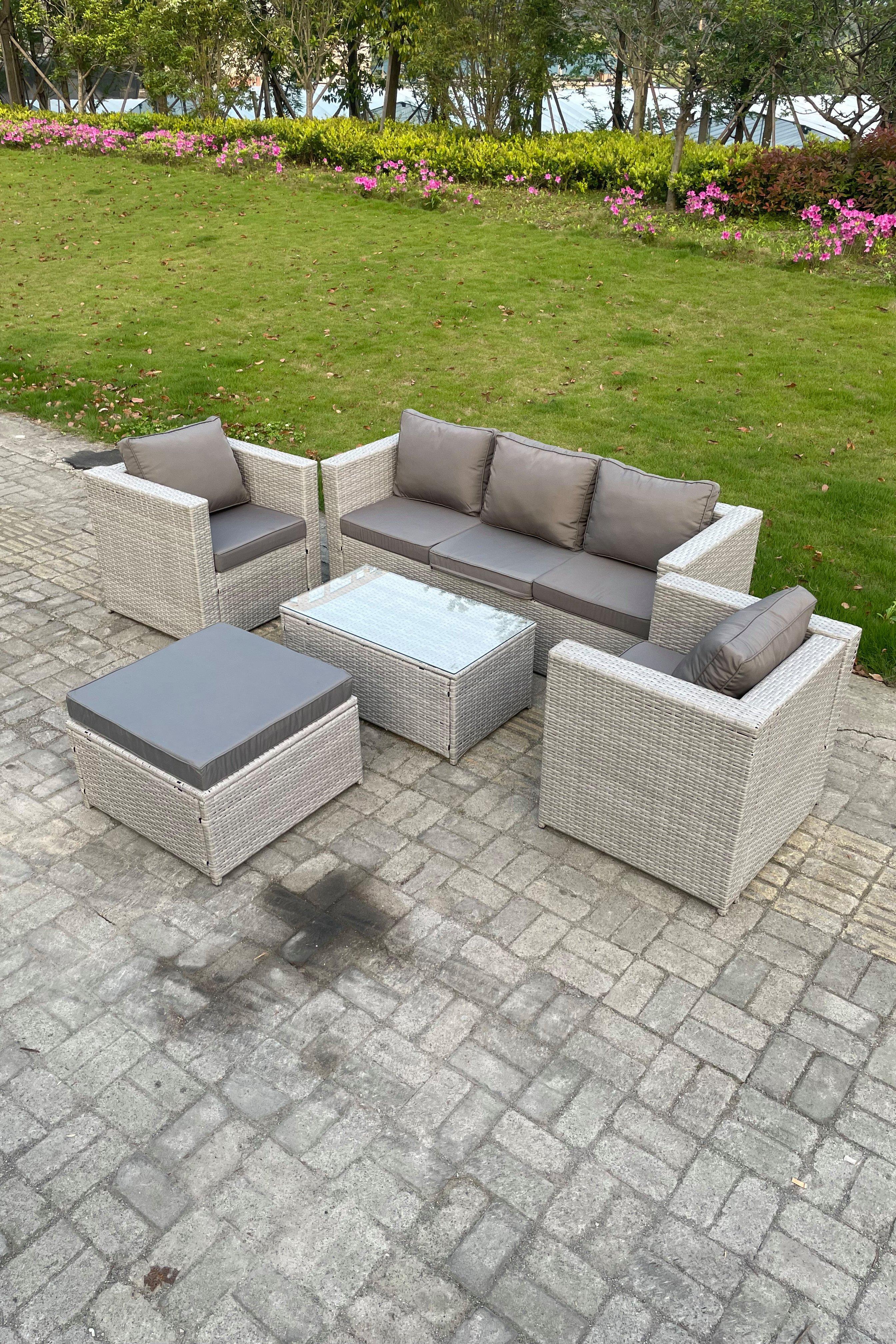 Outsunny 6 Pieces Rattan Furniture Set Conservatory Sofa Deluxe Wicker Garden Gr