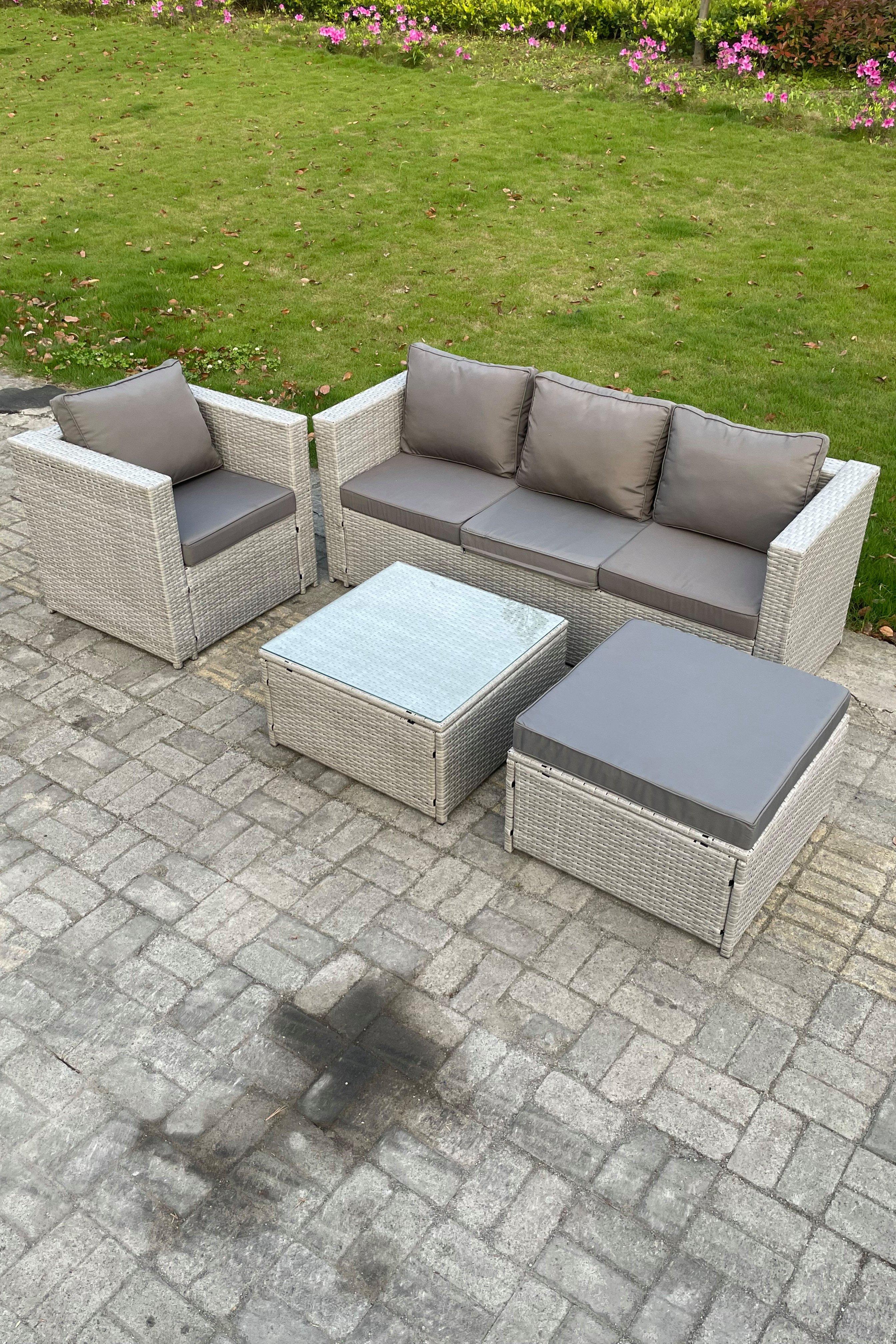 5 Seat Light Grey Lounge Outdoor PE Rattan Garden Furniture Set Wicker Sofa Set
