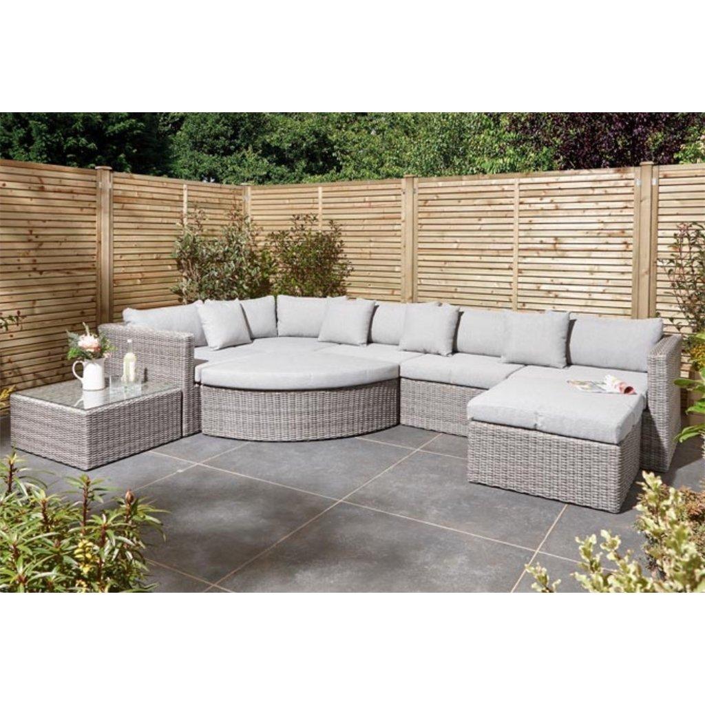 EVRE Nevada 6 Seater Outdoor Rattan Garden Furniture Set Wicker Weave Sofa Coffee Table Stool with Cushions For Patios Decks Conservatories Sectional Corner Conversation Piece (Grey)