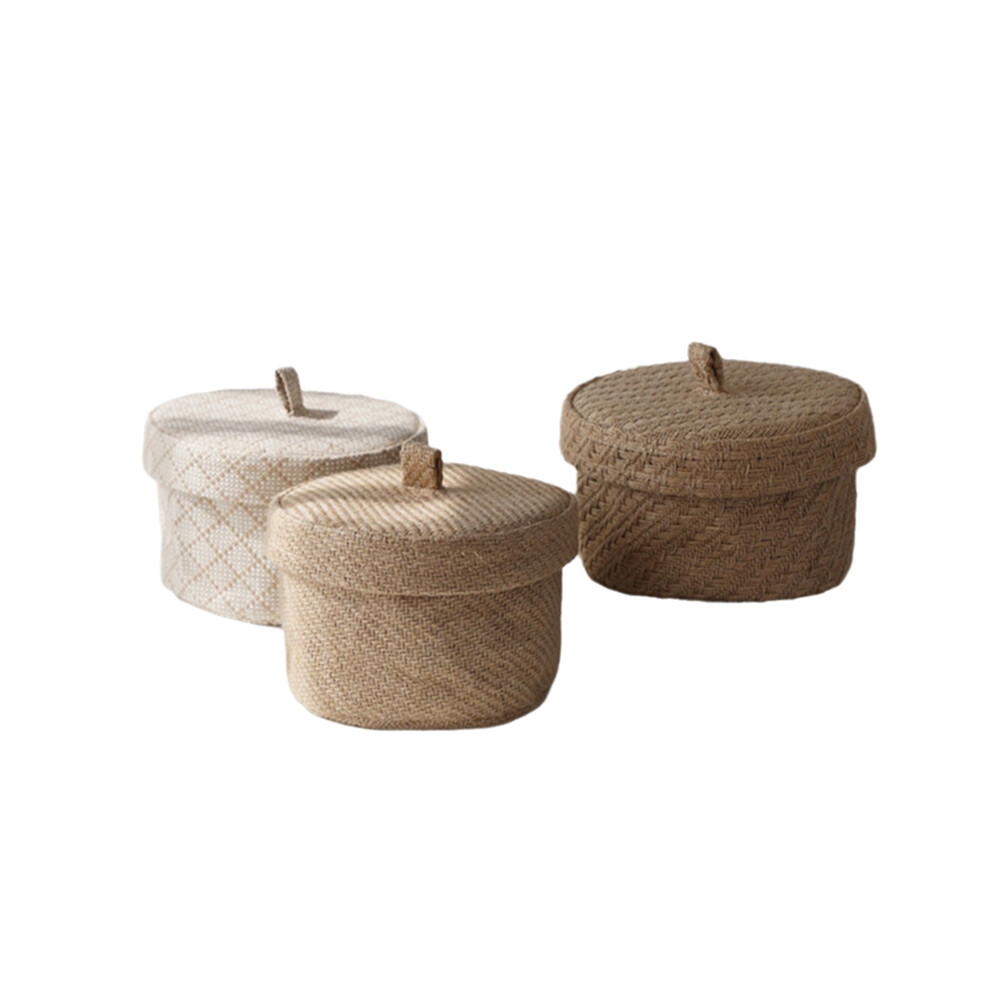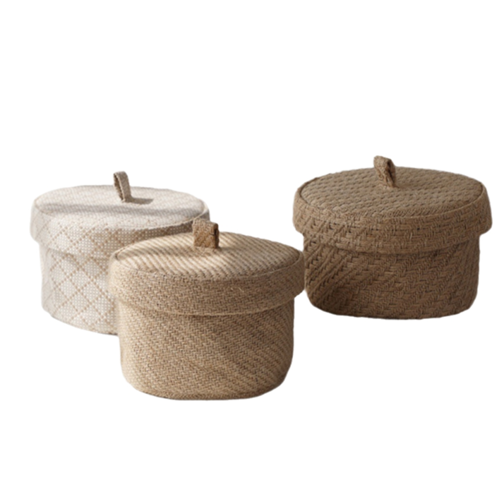 Wicker Seagrass Flower Pot Boxes Sundries Storage Baskets with Lids Weaving Snack Box Wardrobe Table Round