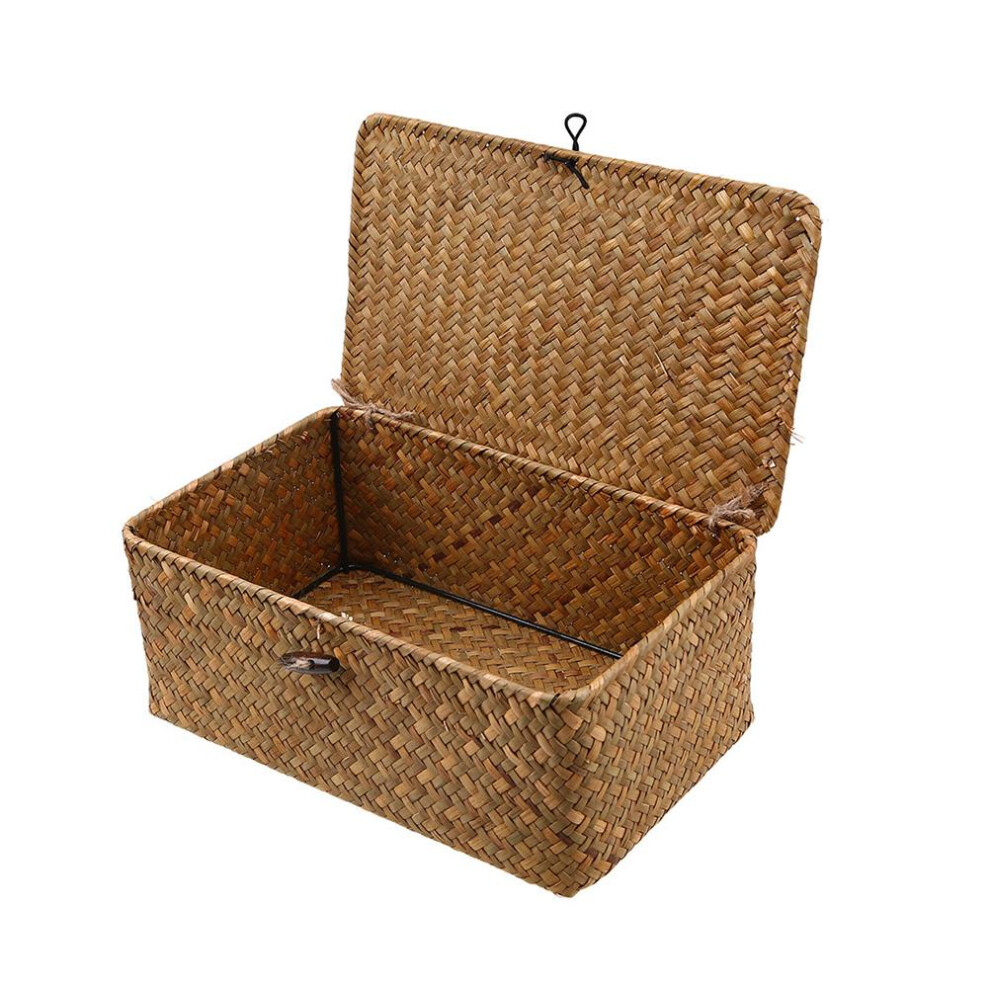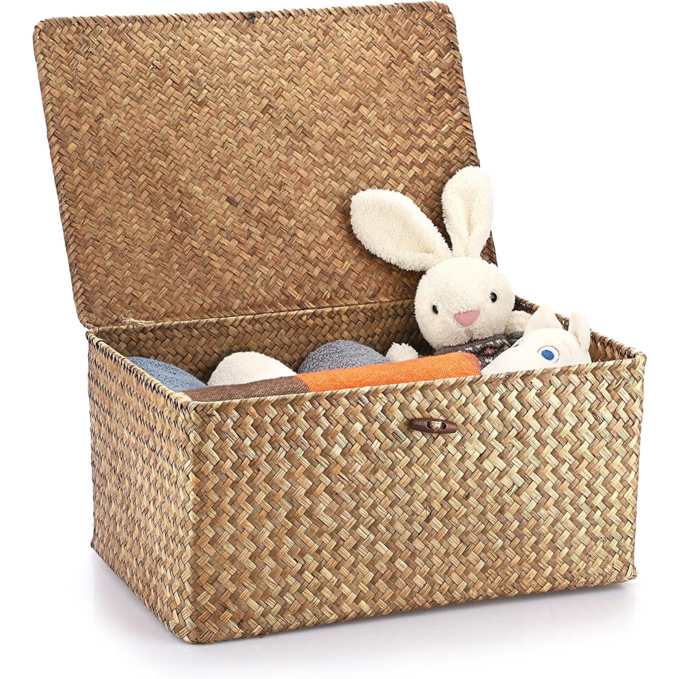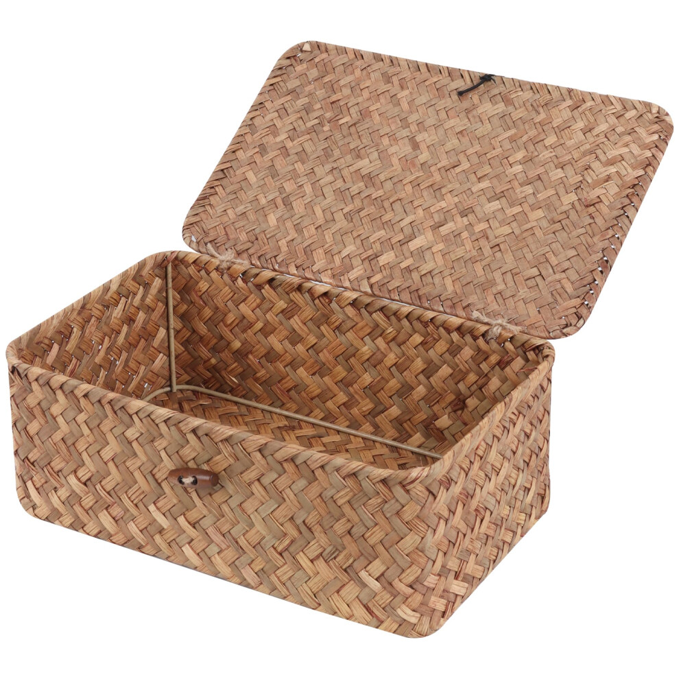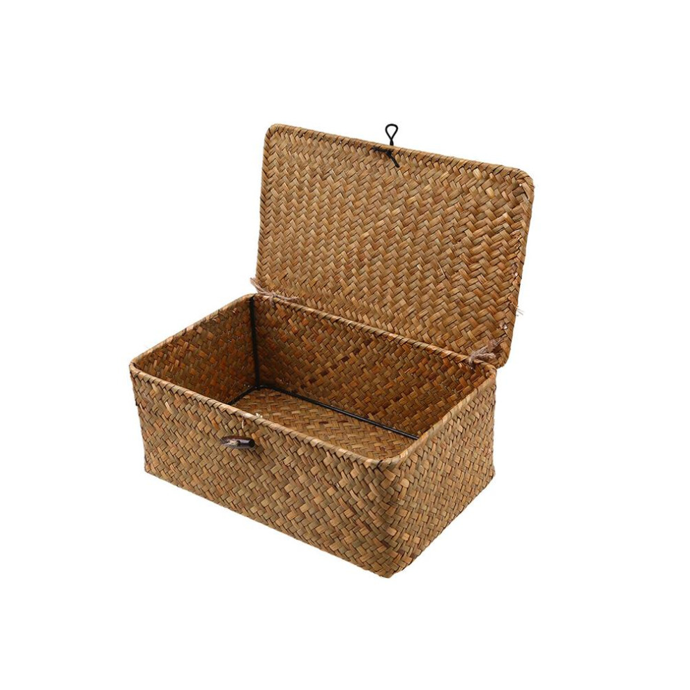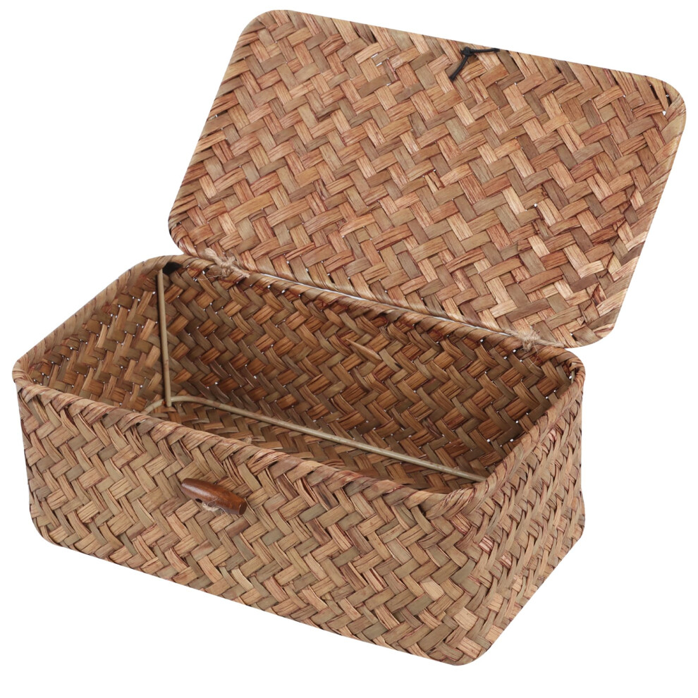 Decorative Basket With Lid Handwoven Seagrass Storage Boxes Multipurpose Natural Baskets for Living Room Bedroom Bathroom Eco Friendly Wicker Organize