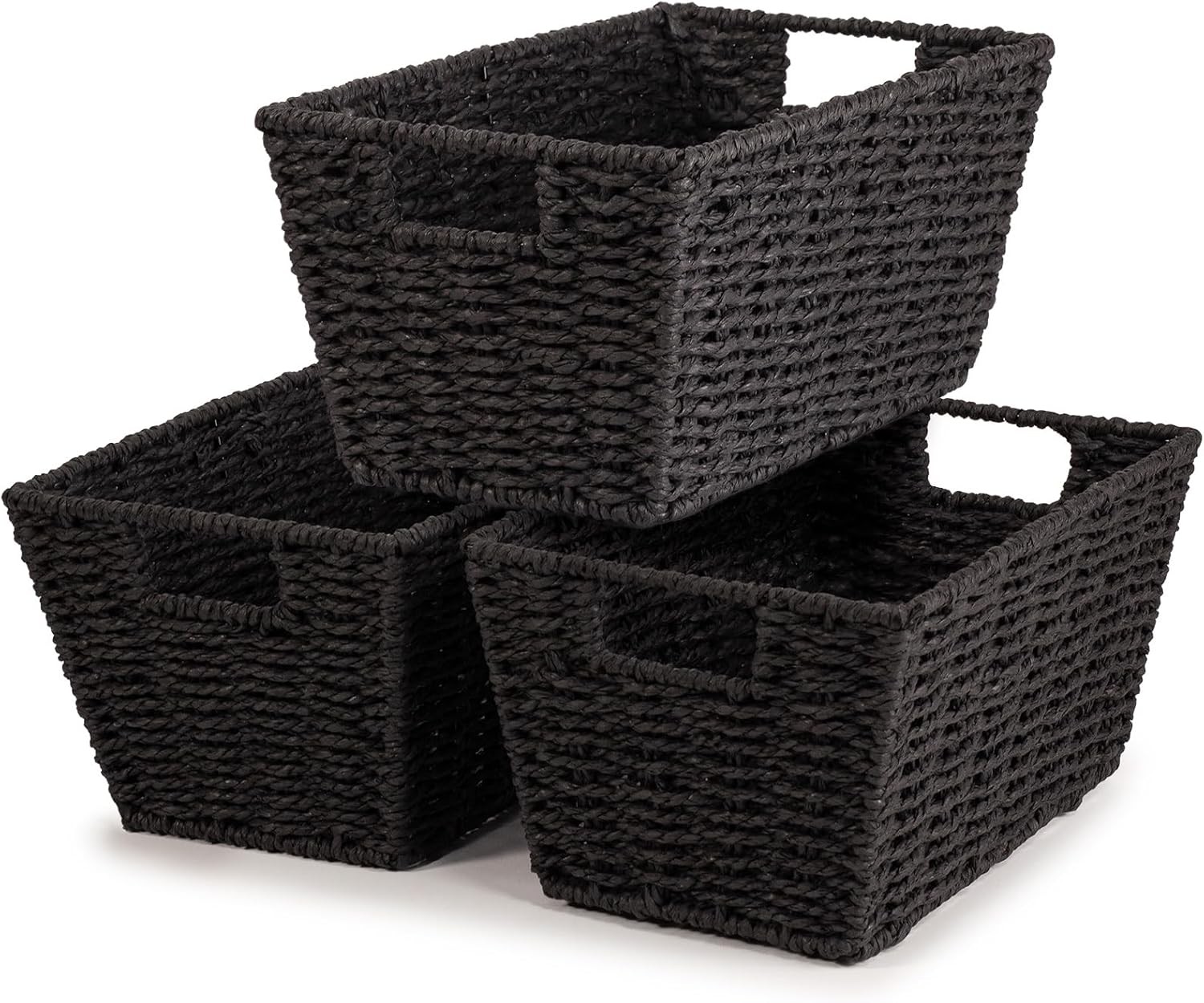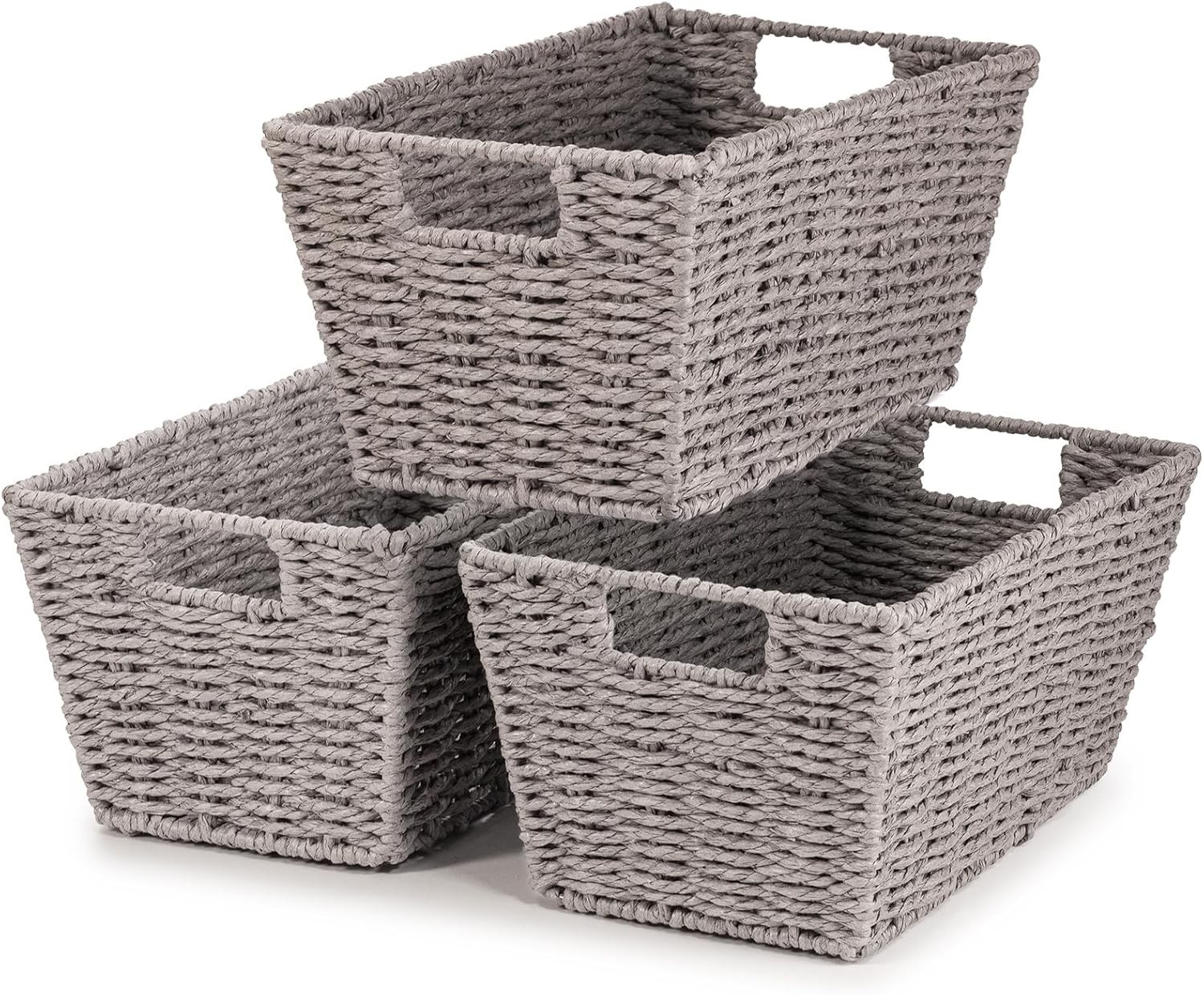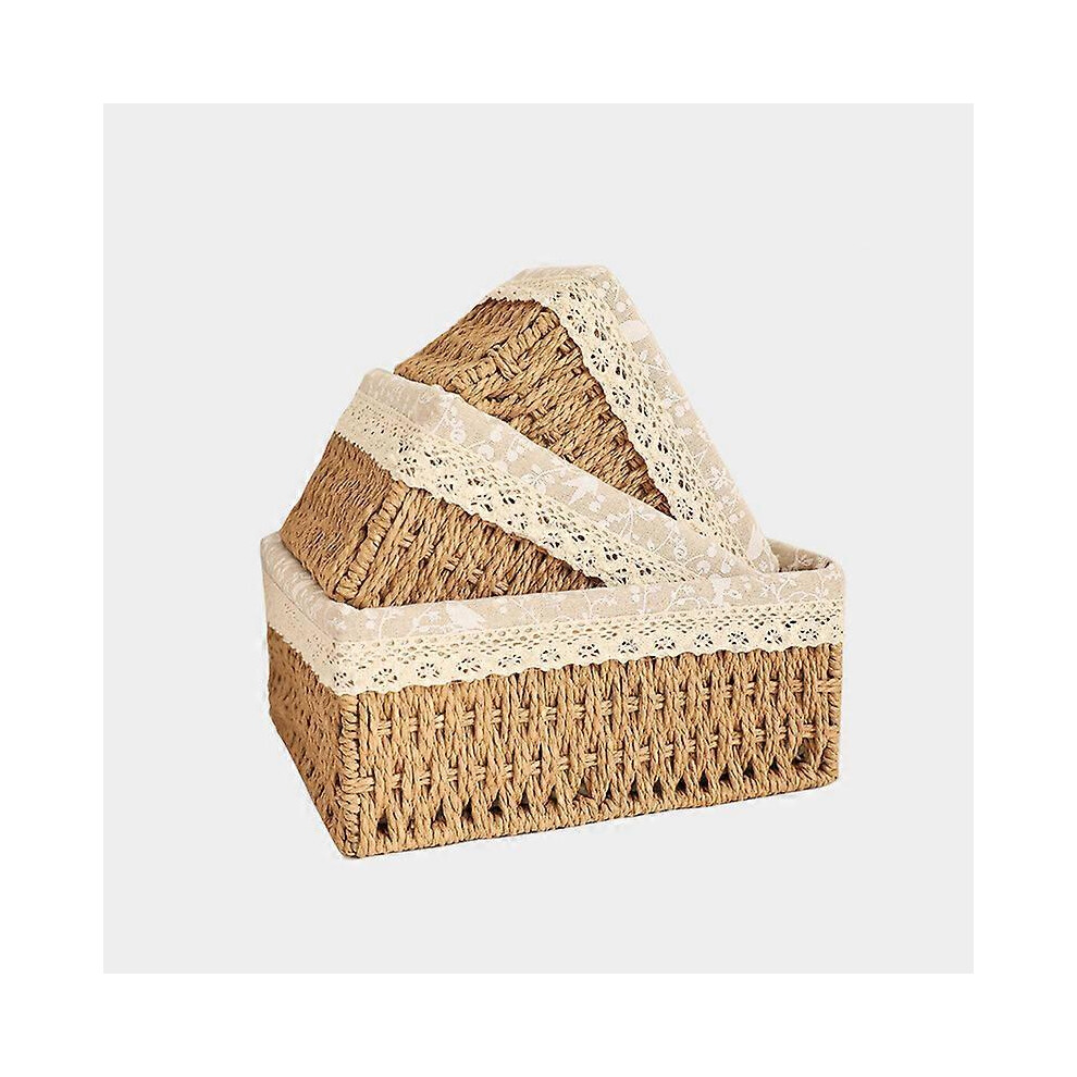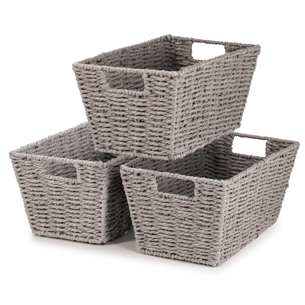 (As show, One size) Woven Wicker Storage Baskets, Paper Rope Storage Boxes Bin Organizer Divider for Cupboards Drawer Closet Shelf Dresser, Set of 3 (
