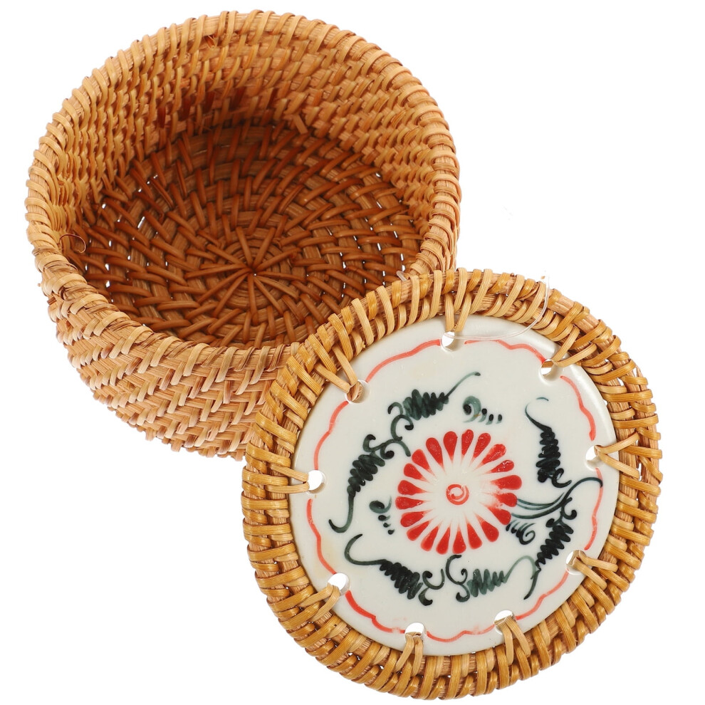 DSH Food Baskets Tea Container Round Storage Box Rattan Boxes with Lid Wicker Serving Fruit Egg