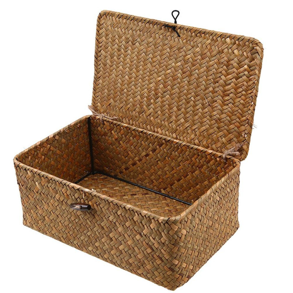 Natural Wicker Baskets, Handcrafted Seaweed Storage Solutions for Clutter-Free Spaces, Durable Rectangular Basket Bins, Household Organizer Boxes for