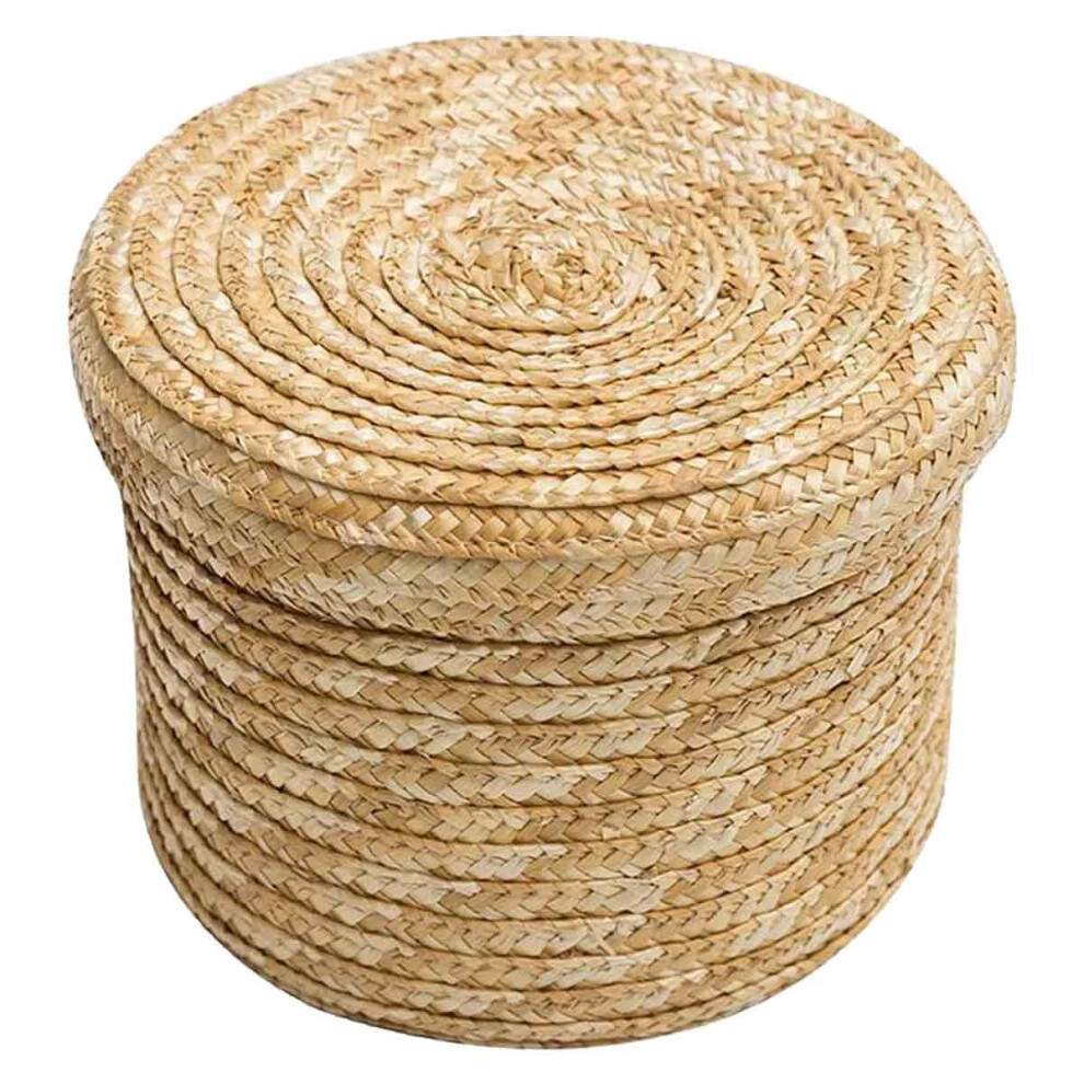 Rersduyt Wicker Seagrass Flower Pot Boxes Sundries Storage Baskets with Lids Weaving Snack Storage Box Wardrobe Table Round