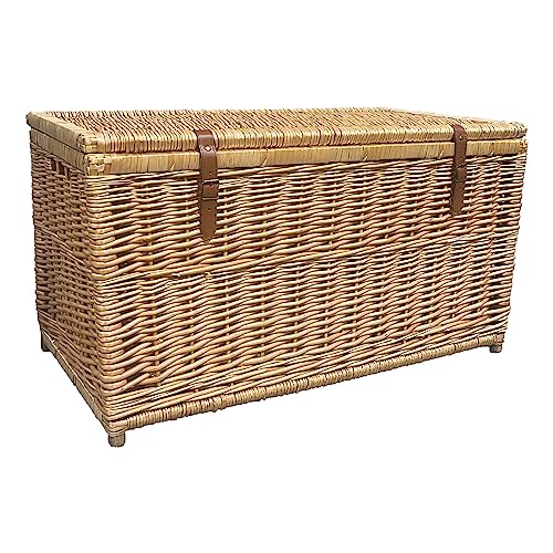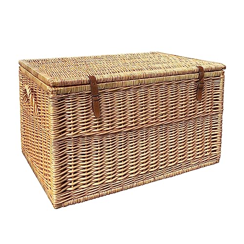 Arthur Cameron - Modena Deluxe Wicker Storage Basket with Lid, Leather Straps to Secure Shut & Strong Wooden Frame - Large wicker basket, storage trunk, storage chest (Extra Large, Natural)