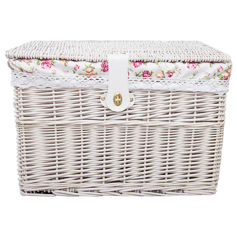 Wicker Storage Trunk 12 By 8 By 8 Inch White Wicker With Floral Liner Lockable Storage For Toys Blankets Clothes