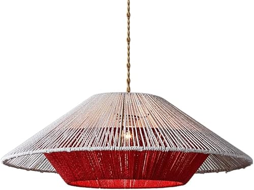Boho Minimalist Handmade Woven Hemp Rope Cage Kitchen Island Light Rural Farmhouse Natural Rattan Wicker Hanging Lamp Retro Dining Table for Living Room Study/Natural/