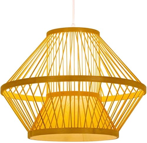 LYGXWJFC Ceiling lamp Handwoven Bamboo Basket Kitchen Island Pendant Light Boho Wooden Dining Room Hanging Lamp Japanese Retro Style Lantern Wicker Rattan Chandelier For Living Table