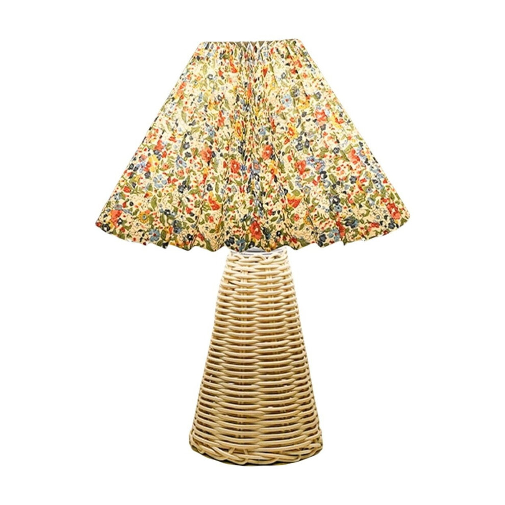 Small Wicker Lamp Table Pleated Lampshade Usb, Vintage Bedside For Farmhouse Decoration