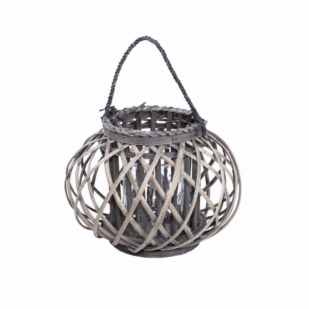 Round Grey Wicker Lantern With Candleholder Garden Lightning Table Lights Rattan Lamp Decorative Rattan Lantern