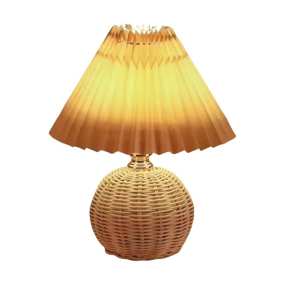 Small Wicker Table Lamp with Pleated Shade, USB Vintage Farmhouse Bedside Lamp â Compatible with USB Power