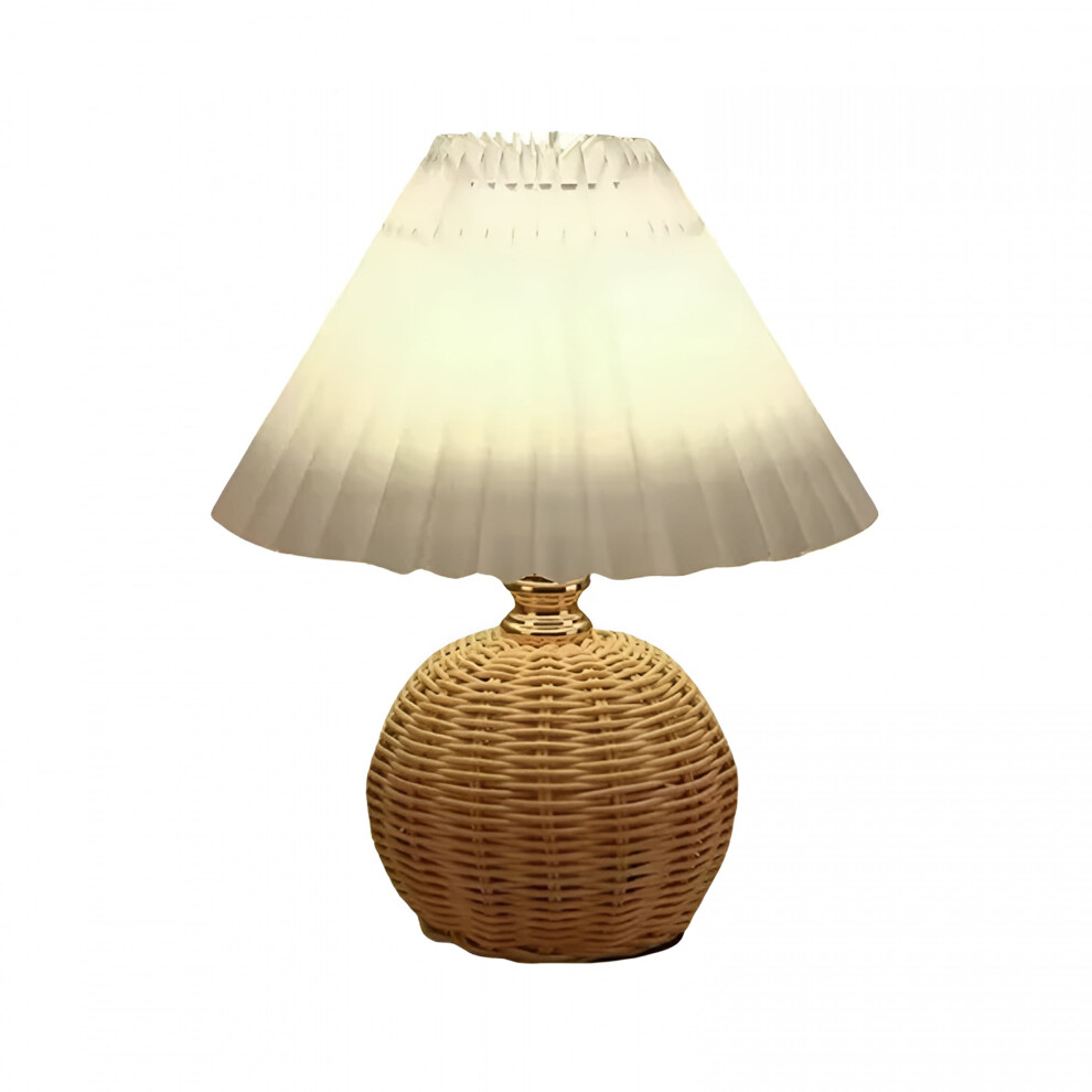 Small Wicker Table Lamp with Pleated Shade, USB-Powered Vintage Farmhouse Bedside Lamp â Compatible with USB Power