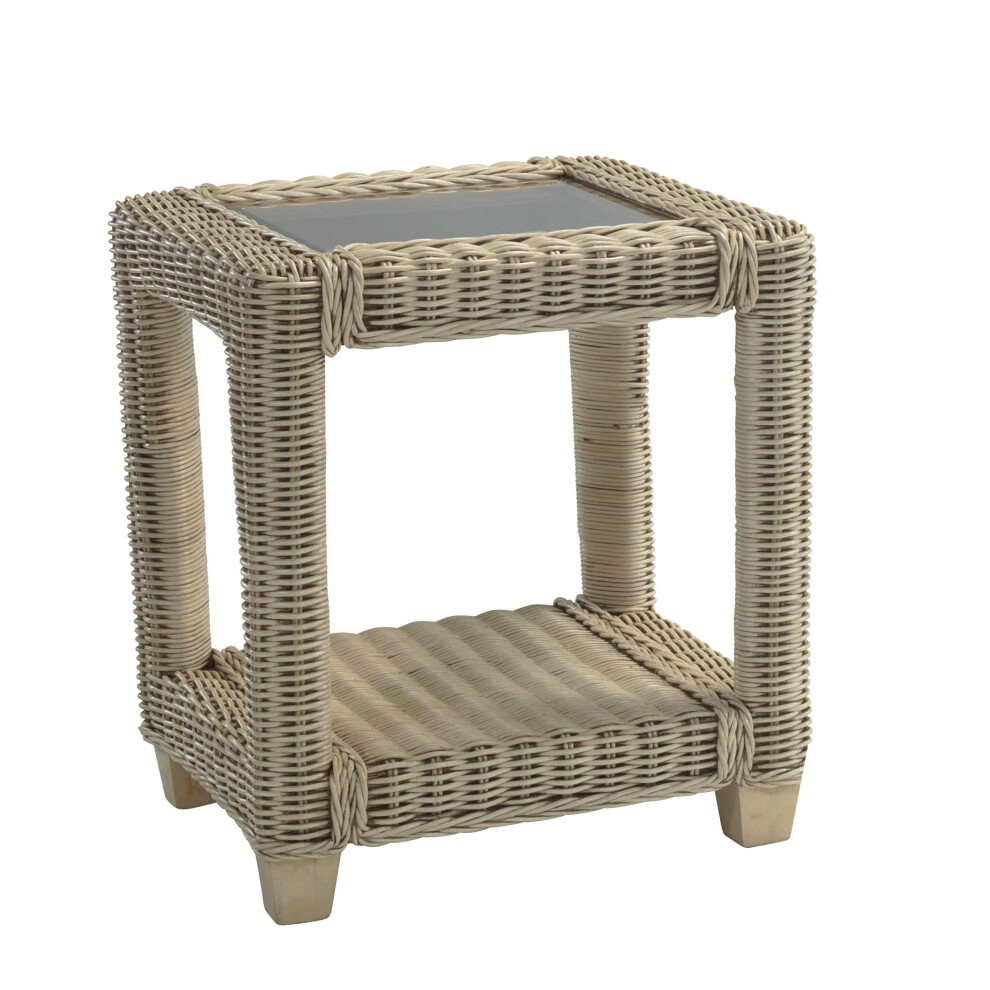 Desser Burford Sofa Side Table with Storage Shelf ? Ready Assembled Glass Top Lamp Table with Square Natural Wash Wicker Cane Frame ? Luxury Indoor