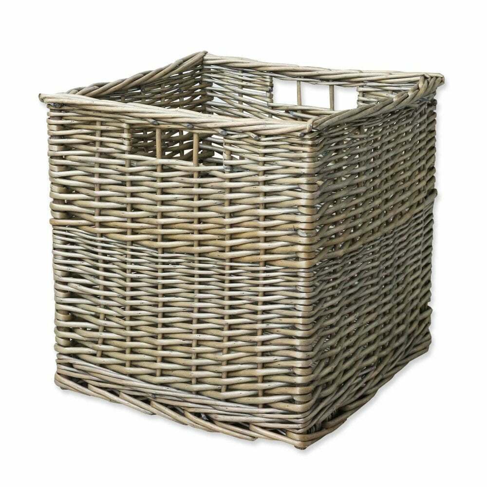 Grey Wash Handled Cube Wicker Willow Storage Basket Home Organisation