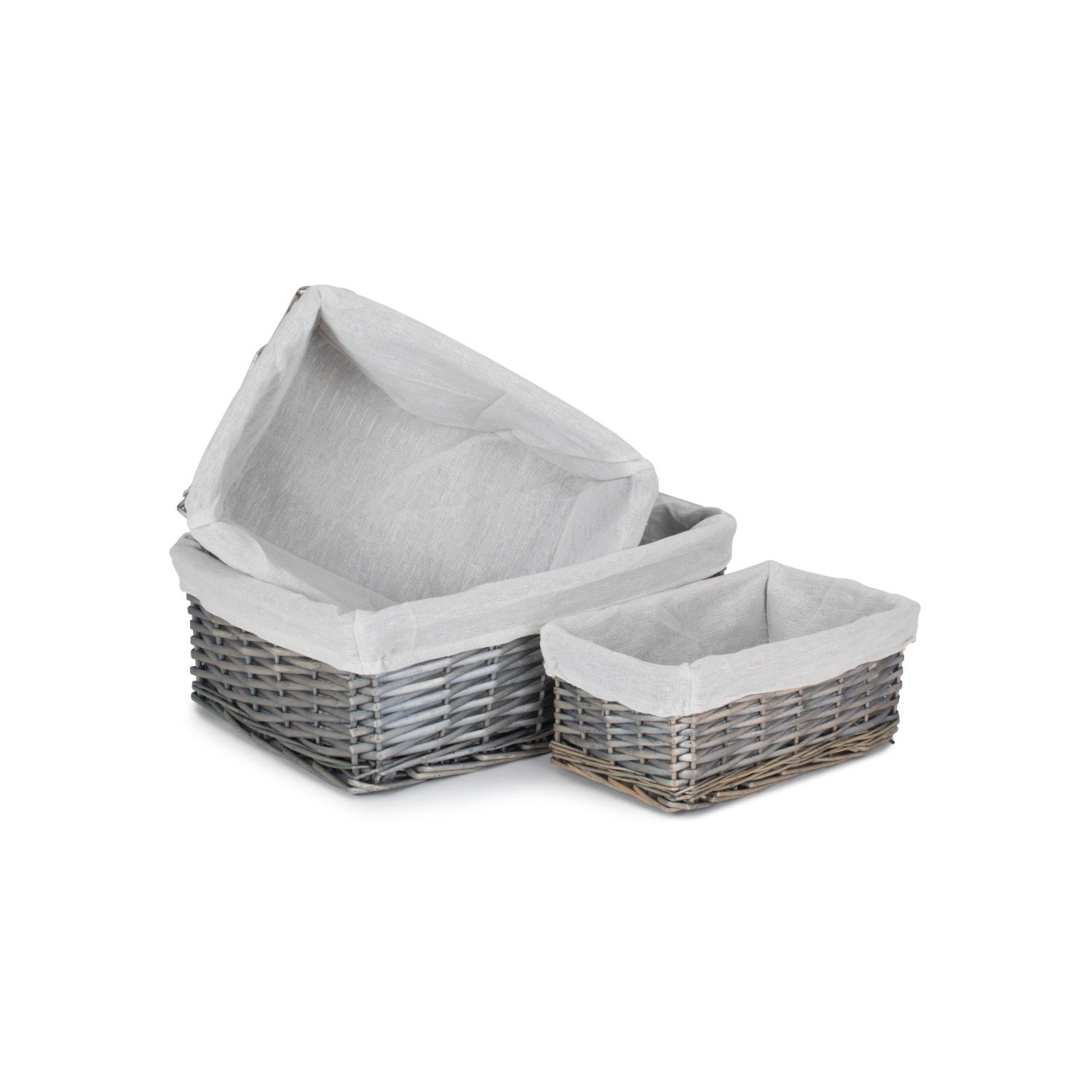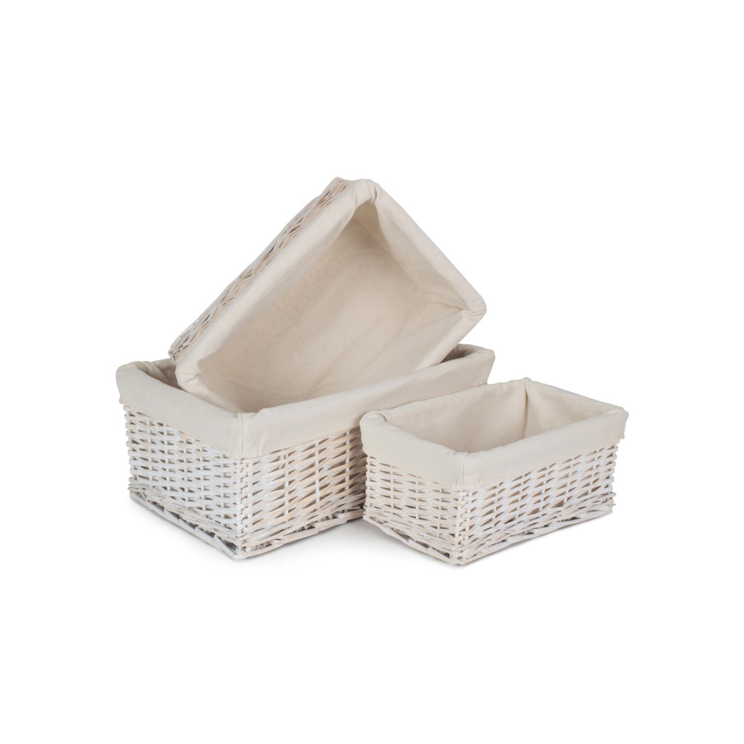 Antique Wash Wicker Storage Basket with White Lining Set 3