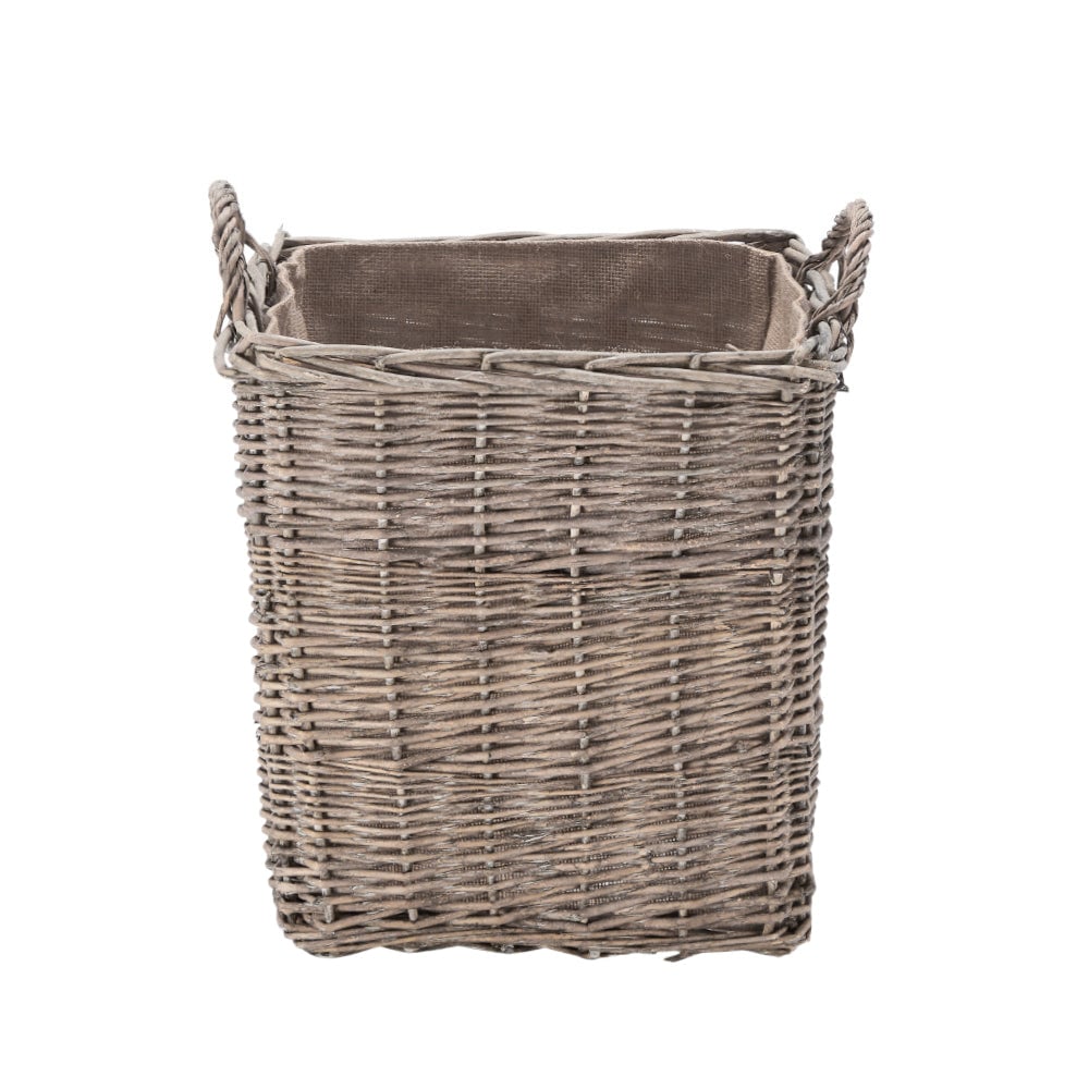 Wovenhill Wicker Grey Wash Square Log Basket with Hoop Handles