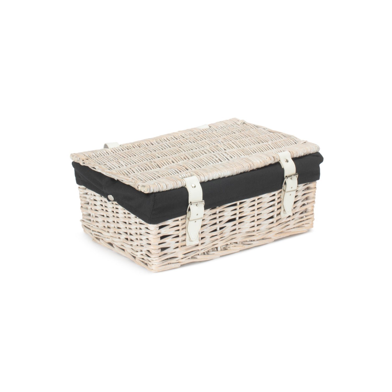 14 Inch White Wash Wicker Hamper Basket with Black Lining