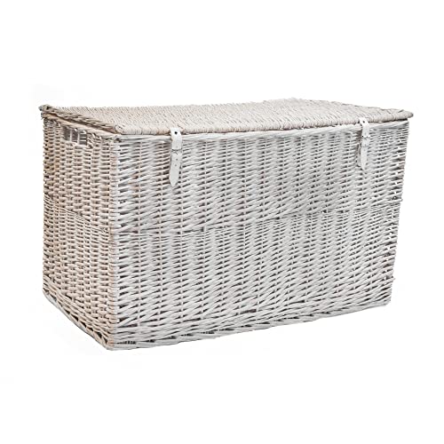 Arthur Cameron - Lightweight Wicker Storage Trunk, Storage Box with Lid & Leather Straps - Woven Chest, Basket, Large Wicker Basket with Lid (White Wash, Extra Large)