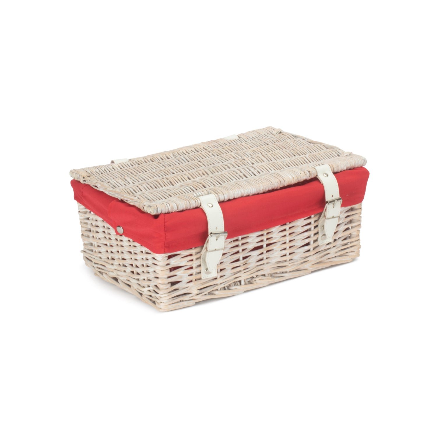 Red Hamper Medium White Wash Wicker Storage Basket with White Lining
