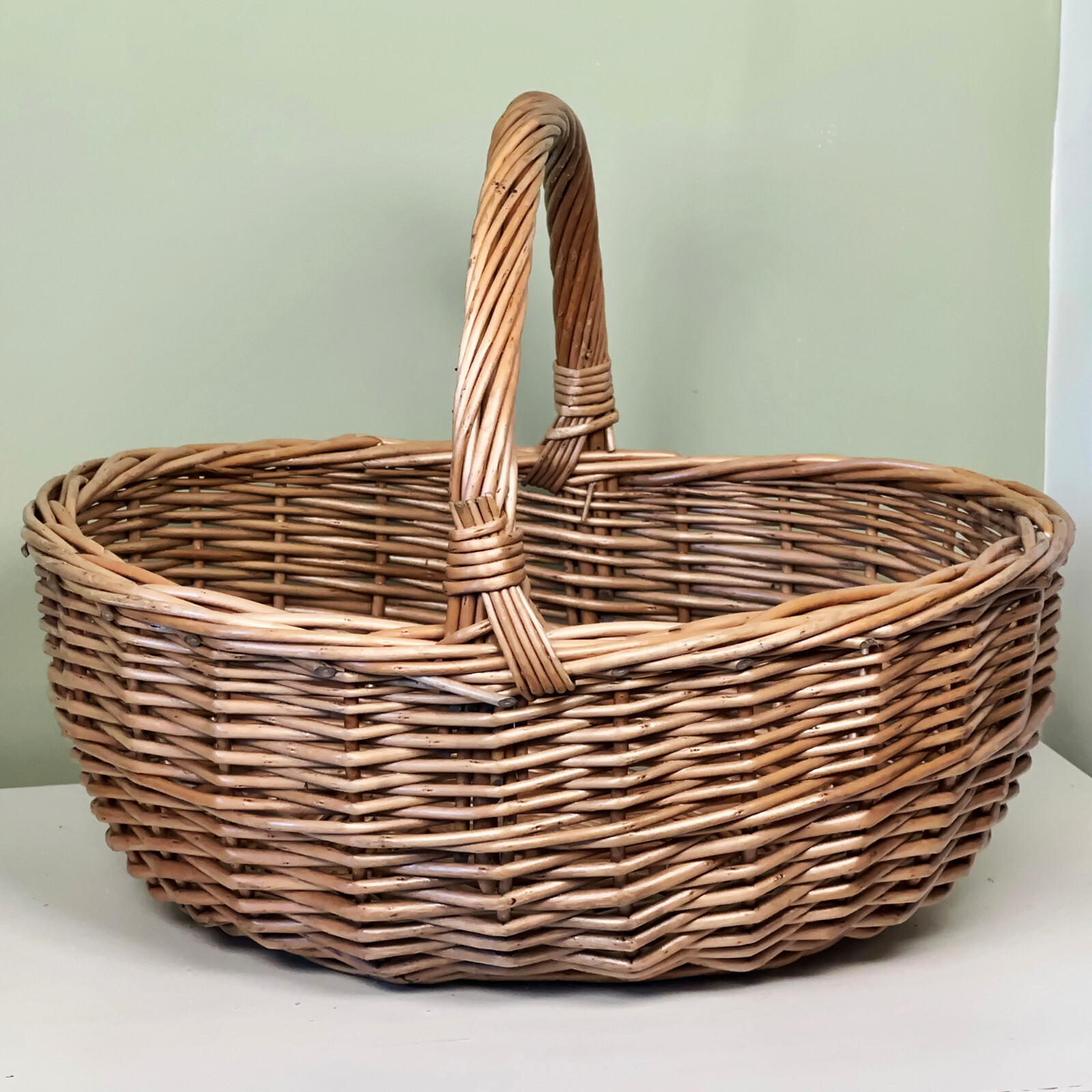 Wicker Shopping Basket Handle Oval Antique Wash Willow Storage Carry Shopper