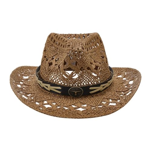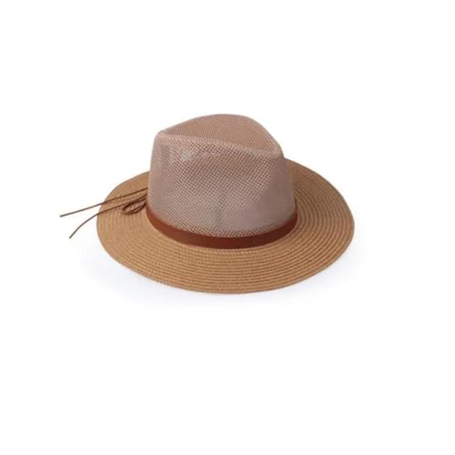 CHENWEIHAI Sun Hat Straw Hat Hollowed Straw Hat Men Women Cowhats Breathable Beach Caps Stylish Holiday Wide Brim Sun Cap(One Size/Khaki)