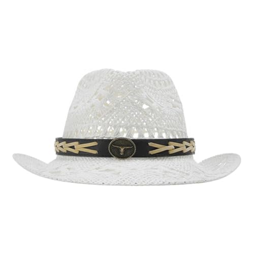 CHENWEIHAI Sun Hat Straw Hat Hollowed Straw Hat Men Women Cowhats Breathable Beach Caps Stylish Holiday Wide Brim Sun Cap(One Size/White)