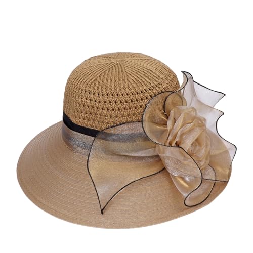 CHENWEIHAI Sun Hat Straw Hat Big Flower Decor Wide Brim Sun Protection Beach Cap Women Hat Breathable Round Top Sun Hats For Vacation Beach(One Size/Khaki)