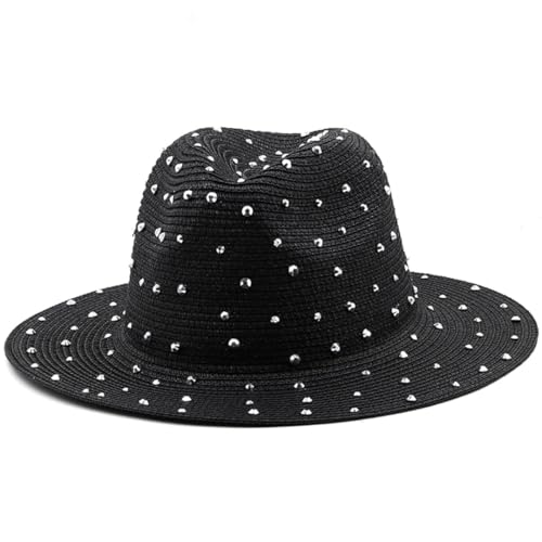 CHENWEIHAI Sun Hat Straw Hat Panama Soft Straw Hat Women Wide Brim Beach Sun Cap Fedora Hat(56-58Cm/Black)