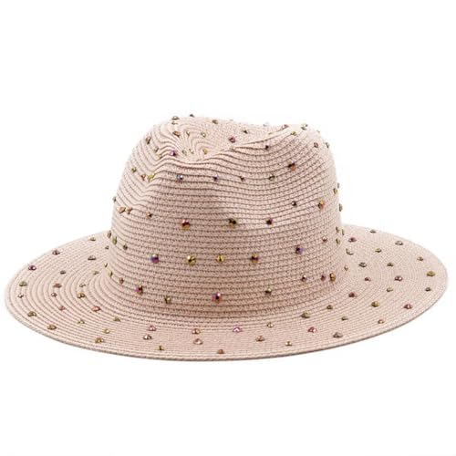 CHENWEIHAI Sun Hat Straw Hat Panama Soft Straw Hat Women Wide Brim Beach Sun Cap Fedora Hat(56-58Cm/Pink)