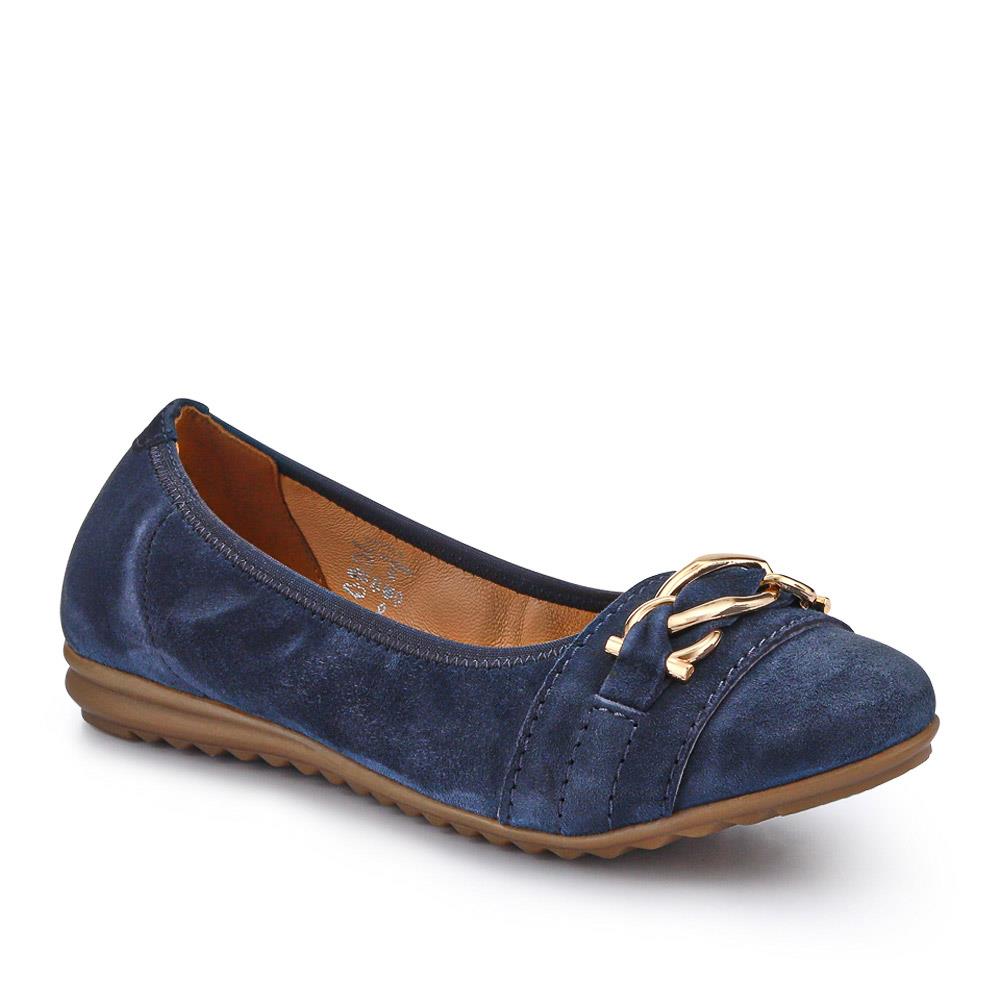 Jones Bootmaker Womens Yvette Leather Wide-Fit Ballet Pumps - Navy - Size UK 5