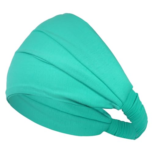 Wide Headbands for Women Men Fashion Head Bands Non Slip Elastic Hair Bands Knoted Turban Sport Sweat Headband for Yoga Running Gym Cotton 17 Colors Light Green