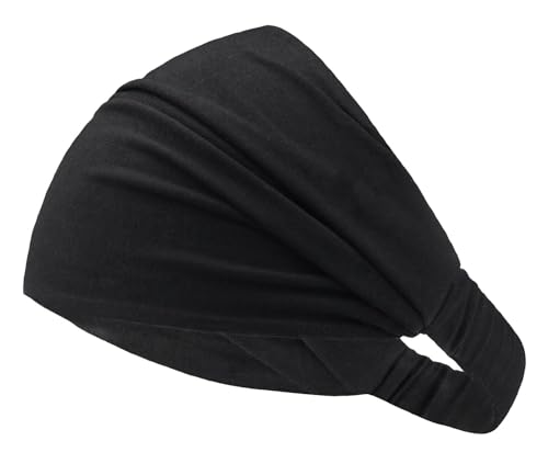 Wide Headbands for Women Men Fashion Head Bands Non Slip Elastic Hair Bands Knoted Turban Sport Sweat Headband for Yoga Running Gym Cotton 17 Colors Black