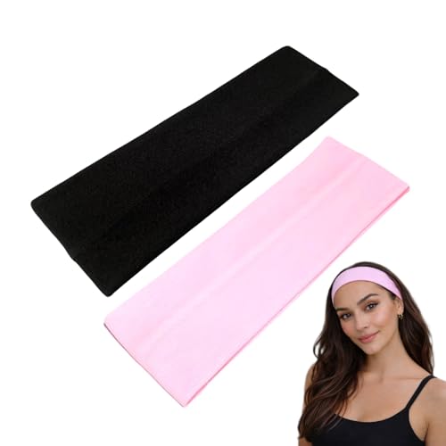2 Pcs Headbands Elastic Head Bands Soft Hair Bands Wide 8 cm Headbands Sweat-Wicking Stretchy Unisex Head Band Women Men for Workout, Yoga, Makeup, Running, Outside Eventments(Black)