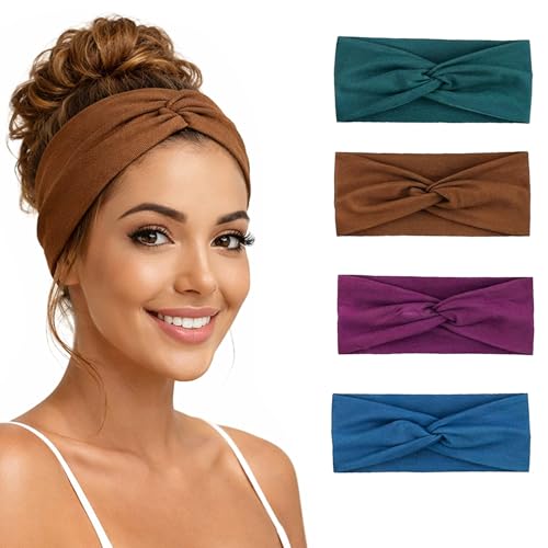 flintronic 4Pcs Women's Elastic Headbands, Wide Twisted Hairband, Fashion Yoga Hair Bands, Wraps Knotted Cute Hair Bands, Hair Accessories for Daily Sport Fitness