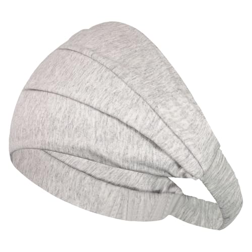 Wide Headbands for Women Men Fashion Head Bands Non Slip Elastic Hair Bands Knoted Turban Sport Sweat Headband for Yoga Running Gym Cotton 17 Colors Light Gray