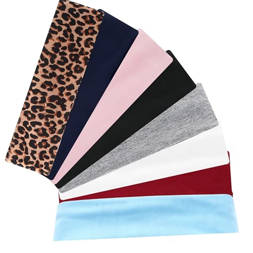 8Pcs Wide Sports Headbands for Women, 6cm Soft Elastic Sweat-Absorbing Hair Bands for Fitness, Yoga, Running, Workout, Compatible with Most Brands