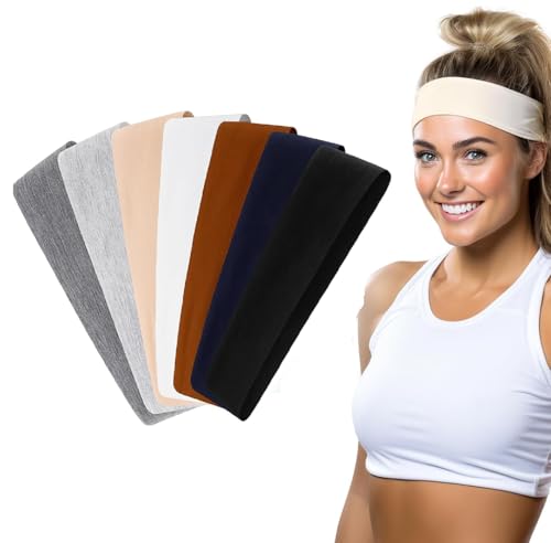 Lotnery 7 Pcs Wide Headbands for Women's Hair, Soft Elastic Head Bands for Adult Women & Men, Yoga Gym Sports Headband, Sweat Absorbing Non-Slip Hair Accessories Multicoloured