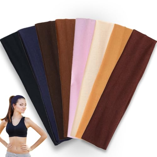 SYEYCW 8 Pcs 5cm Wide Headbands for Women's Hair, Cotton Sports Hairband for Women Girls, Breathable Hair Band for Sweat-Wicking, for Doing Workout, Yoga, Running (Black, Gray, Brown, Navy Blue)