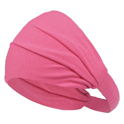 Wide Headbands for Women Men Fashion Head Bands Non Slip Elastic Hair Bands Knoted Turban Sport Sweat Headband for Yoga Running Gym Cotton 17 Colors Rose Red
