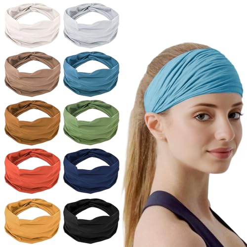 RITOPER 10 Pack Wide Headbands, Workout Yoga Running Boho Hair Wraps, Non-Slip Thick Sweat Bands for Active Women