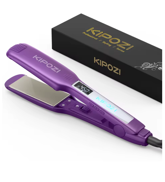 KIPOZI Purple Hair Straightener Flat Iron Wide Plate 60mins Automatic Shut Off